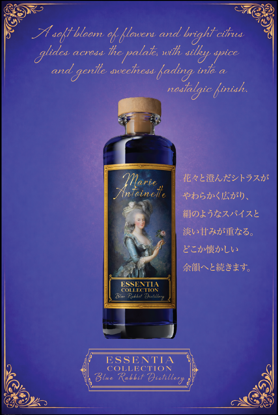 ローズや柑橘の花の繊細なニュアンスに、やわらかなジュニパーが重なり、果実味と穏やかなスパイスが上品で気品ある余韻へと導きます。特製のラグジュアリーなプレゼンテーションボックスに収められています。